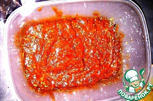 Готовим соус, лучше домашняя аджика, но она у нас сыродавленая и такая вкусная, что было жаль, поэтому я использовал Сацибели.