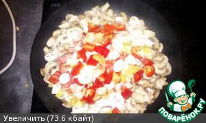 Через 5-7 мин. добавляем шерри, кайенский перец можно размешать с шерри, и накрываем на 3 мин. крышкой.