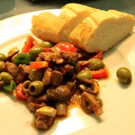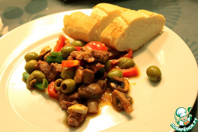 Через 40-45 мин. открываем и добавляем оливки, фаршированные пири-пири, накрываем и ещё на 15 мин.