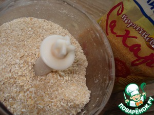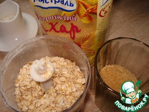 Разогреем духовку до 220 градусов. В блендере размелем хлопья и коричневый сахар.
