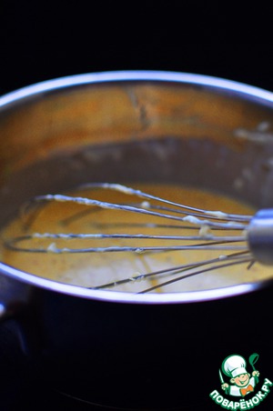Заварить желтковую массу горячими сливками, вливая тонкой струйкой через сито. -