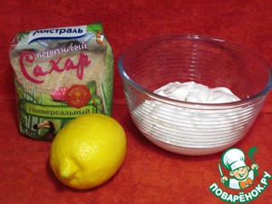 Сметану взобьем с сахаром. Добавим сок половины лимона. Когда желатин настоится, нагреем его на огне, чтобы крупинки растворились. Остудим слегка и добавим в сметанный крем.