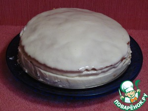 Верх и бока торта тоже смажем кремом. Коржи, после того как испекутся, станут немного меньше размером. Поэтому между коржом и стенкой формы будет зазор где-то 7 мм, и крем по бокам можно легко наносить.