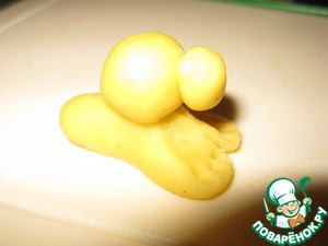 Скатайте из марципана 2 шарика среднего размера. Установите их друг на друга.