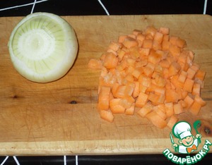 Лук измельчить, морковь нарезать маленькими кубиками.