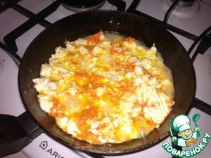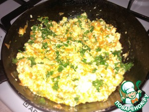 Обжарить сыр с морковью до готовности на сковороде около 10 мин., подсолив, приправив куркумой.