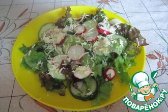 Несмотря на простоту продуктов, этот салат у моей семьи имел просто-таки грандиозный успех. К моему большущему удивлению и удовольствию ел даже сынишка, в которого обычно впихнуть овощи, кроме огурцов, просто невозможно. А тут, то ли его форма прельстила, то ли вид с аппетитом поедающих салат папы и сестрички, но главное, прогресс налицо, вернее в тарелке