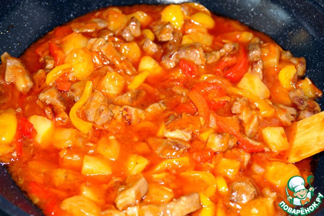 Оставить протушиться минут 7, чтобы выпарилась лишняя жидкость и овощи стали более мягкими. -