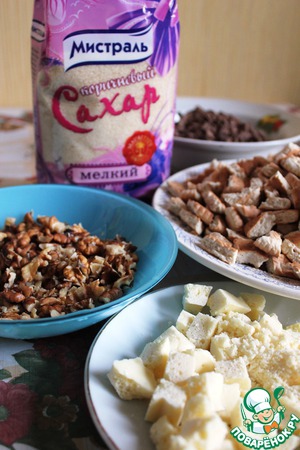 Остужаем до комнатной температуры. Добавляем орехи, печенье и белый шоколад.