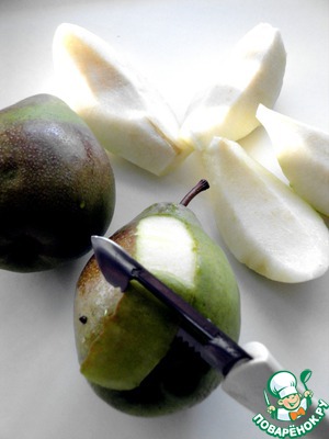 Груши очистить. Разрезать на четвертинки и удалить серединки.