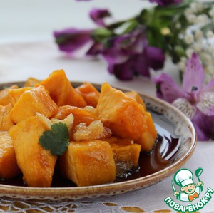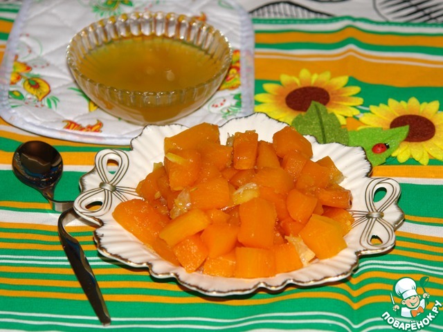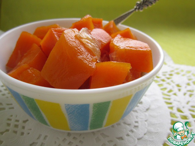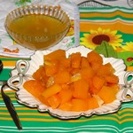 Как-то давно в гостях на столе стояла банка с ровными оранжевыми дольками чего-то, похожего на дыню в окружении сока. Это оказалась тыква, но по вкусу больше похожая на дыню. Очень интересный диссерт.