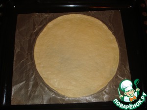 Из каждой части раскатать круг. Я это делаю в разъемной форме, выложенной бумагой для выпечки.