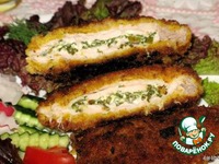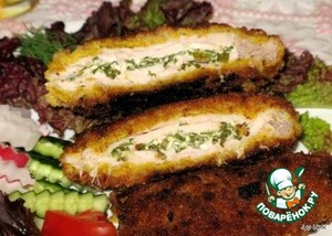 Описание: Нежная и сочная мякоть свинины с дополнением легкой ветчины, с витаминным шпинатом в белом сыре. Все это в золотой панировке… Поверьте, это вкусно!