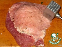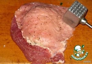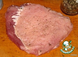 Лопатку вынуть, отбить края и немножко пройтись по всему куску, чтобы стал равномерным.. Посолить, поперчить. Признаюсь, я практически не солила, потому что сыр "Фета" у меня был прилично соленым. |