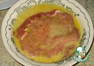 Обмакнуть кусок подготовленного мяса в яйцо. |