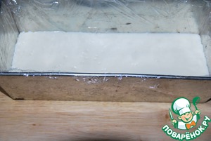 • Заливаем половину крема в форму, даём ему немного застыть.