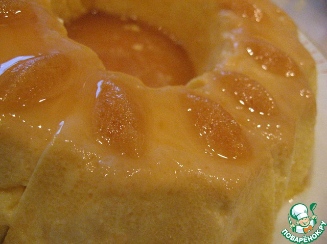 Снимаем фольгу и готовый крем вместе с формой помещаем в холодильник на 4 часа (я готовила поздно вечером, так что десерт "мерз" целую ночь. Утром извлекаем наш десерт из формы (кладем сверху блюдо и просто поворачиваем все вверх дном).