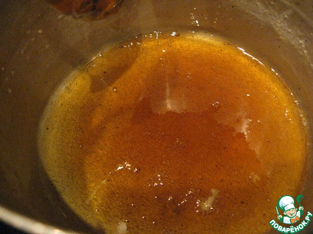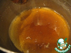 Затем увеличиваем огонь и кипятим жидкость до тех пор, пока она не превратится в темно-золотистую карамель.