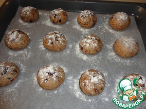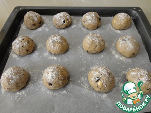 Скатайте небольшие шарики, выложите их на противень и присыпьте сверху мукой. Теперь их надо оставить на полчасика в теплом месте, чтоб они подошли.