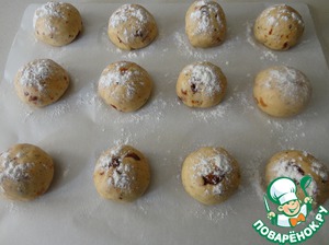 Скатываем шарики, кладем их на противень и присыпаем мукой. Оставляем на полчасика.