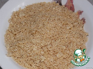 Вермишель размять руками (предварительно выбросив приправу и масло).