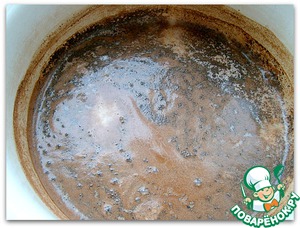 Готовим карамель - 70 гр коричневого сахара провариваем с парой ложек воды. Добиваемся характерного карамельного цвета и тягучей однородности.