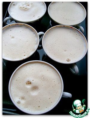 Теперь нам надо соединить кофейно-молочный напиток и взбитые до воздушности яйца. Яичную смесь осторожно, постепенно вводим в молоко.