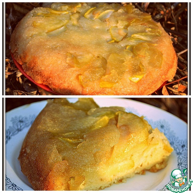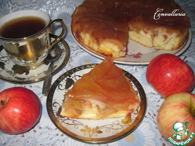Это получается не торт в привычном понимании, а скорее всего вариант запеченных яблок, тесто служит здесь подушкой для яблок.
