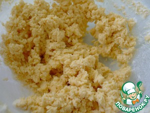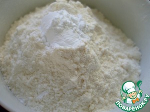 Просеять сверху смесь муки (125 граммов) с 1/2 чайной ложки разрыхрытеля.