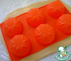 Накрыть тесто листом пергаментной бумаги или пищевой пленки и раскатать его таким образом, чтобы можно было вырезать 6 кругов диаметром 7,5 см.