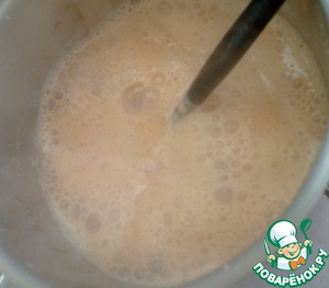 Влить в карамель сливки. Будьте осторожны, горячие брызги могут лететь довольно далеко - могут обжечь руки.