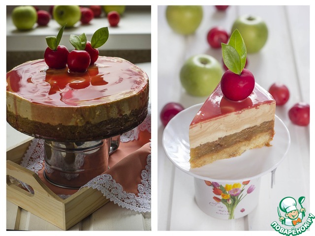 Мой муж любит яблочного слоя больше. Я обожаю побольше карамельного мусса. Высота бисквита-песочной основы тоже дело вкуса.