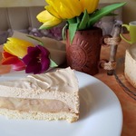 [+4]У меня такой себе незатейливый вариант - без песочной основы, и форма пирожного простенькая. Зато яблочный слой - покорил!