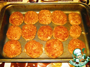 Обхлопать их со всех сторон, чтобы они не развалились при жарке и обвалять в панировочных сухарях. -