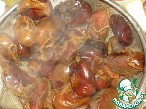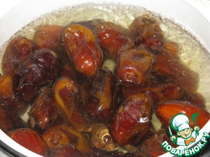 Бланшировать финики в кипящей воде 2-3 минуты.