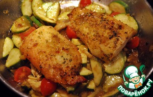 На овощи положить нашу рыбку, закрыть крышкой и еще потомить минут 5. Взбрызнуть лимонным соком и подавать с овощами и рисом и конечно хорошим белым вином.