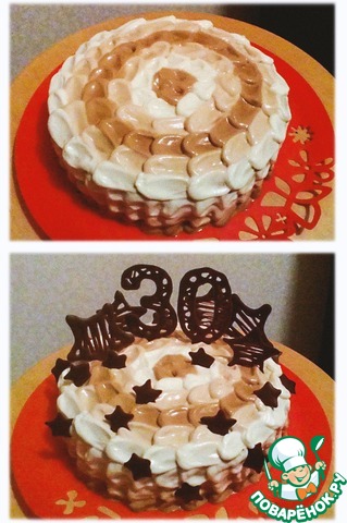 Увидела фото такого оформления торта на иностранном кулинарном сайте и не устояла, решила не откладывать в долгий ящик. Скоро Новый год, и, возможно, кому-либо этот способ украшения торта пригодится.