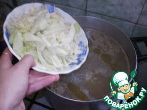 В кипящий бульон добавить картофель. Варить 5 минут.