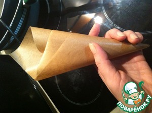 Отрежьте кончик пакетика. Для тонких линий отрежьте мааааленький кусочек. Для толстых - побольше.
