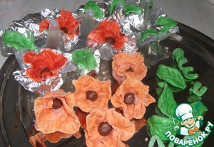 Примерно за неделю нужно подготовить из мастики цветочки и листики, я попыталась сделать маки.