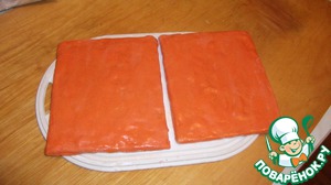 Детали крыши покрываем красной мастикой и подворачиваем края, на загиб по 5 см (не меньше!)