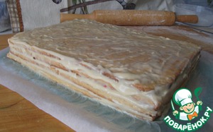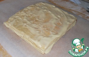 Пока корж горячий, сразу хорошо промазываем его кремом!!!