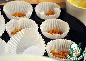 В формочки кладем крошку печенья, уплотняем, так как это наша основа