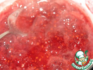 Ягоды (я брала замороженную с сахаром малину) с сахаром довести до кипения.