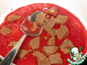 Шоколад поломать на кусочки и растопить в ягодном соке.