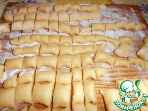 Вымесить крутое тесто, скатать колбаски.