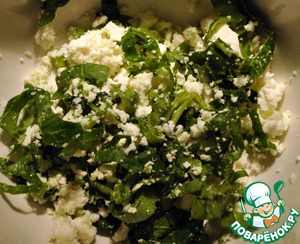 Если у вас большой кусок филе, то просто промазываете одну сторону сырной массой, плотно сворачиваете и разрезаете на порционные полоски - у меня было сложнее, я соединяла небольшие куски рыбы массой и сворачивала, тем не менее получилось отлично, добавить перец по желанию, соль не нужно, так как сыр фета достаточно солен и рыба хорошо пропитается.