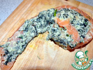 Рецепт «Запеченный рулет из семги и сыра фета с зеленью»: