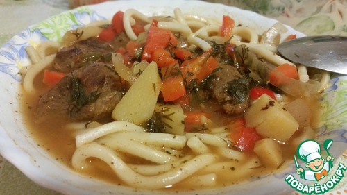 Сделала по вашему рецепту. лапши для лагмана не было заменила шпагетти (всётаки вкуснее с спец. лапшой). К сожалению сельдерея корневого не оказалось дома заменила на кольраби. тоже было вкусно но с сельдереем вкуснее.