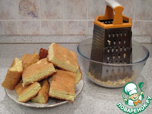 Измельчить подсохший бисквит в крошку, натерев на терке.